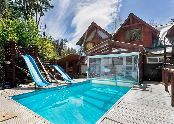 Situated 450 metres from Bahia Manzano, Bog Costa De Rio - Piscina Climatizada Y Costa De Rio Villa Villa La Angostura entices guests with views of the garden. The 3-bedroom holiday home features opportunities for snow skiing, ping-pong, and billiards in the area, 10 minutes by car from Magic Carpet 1.